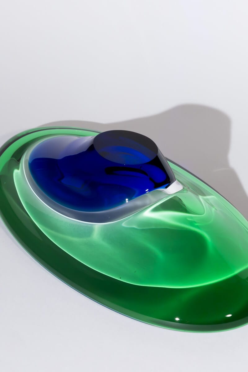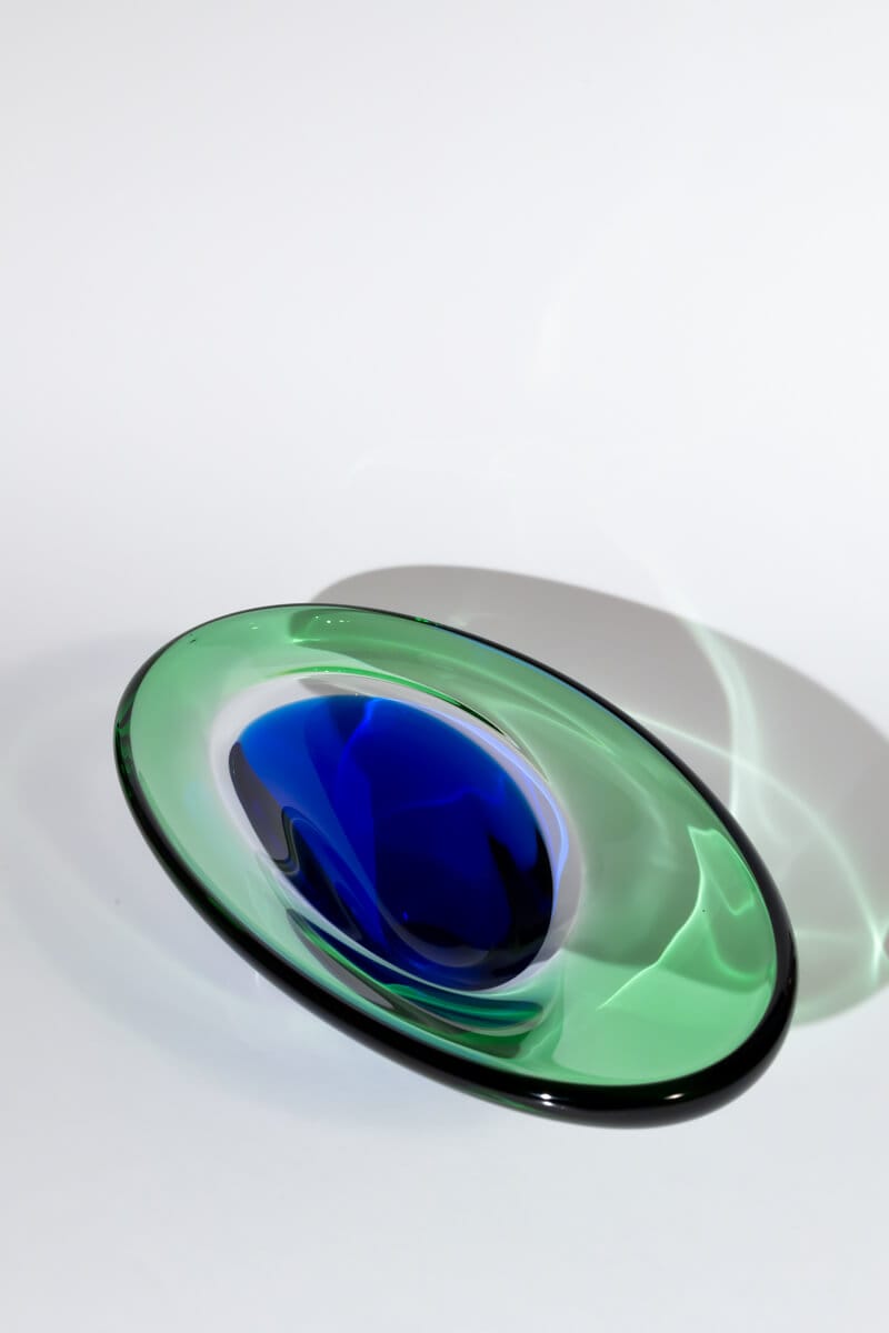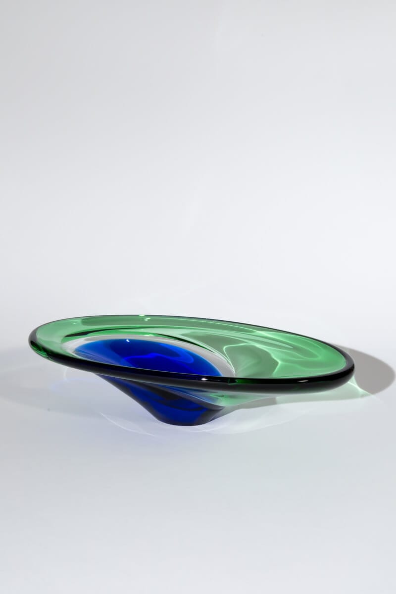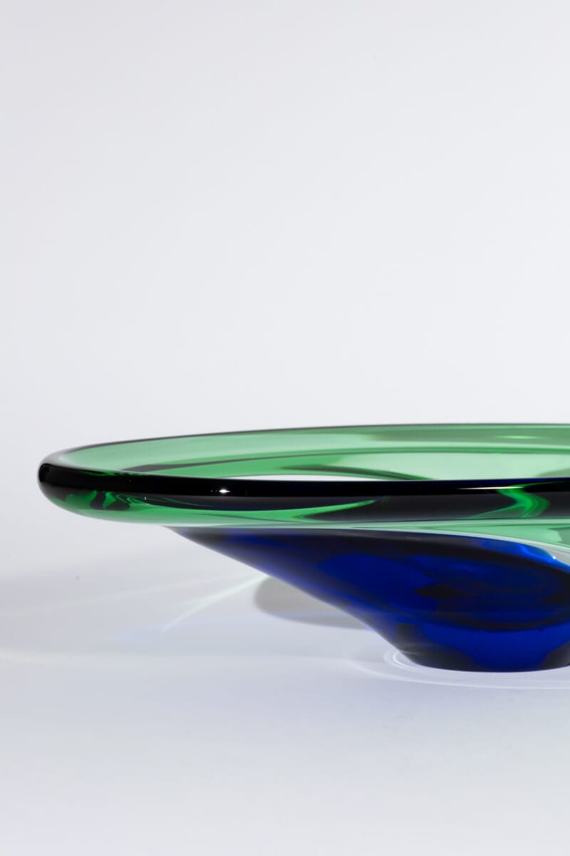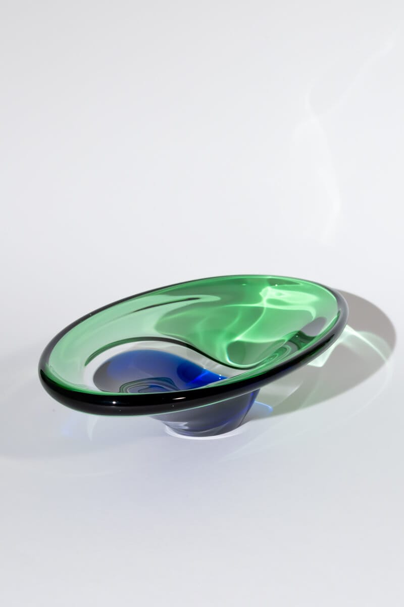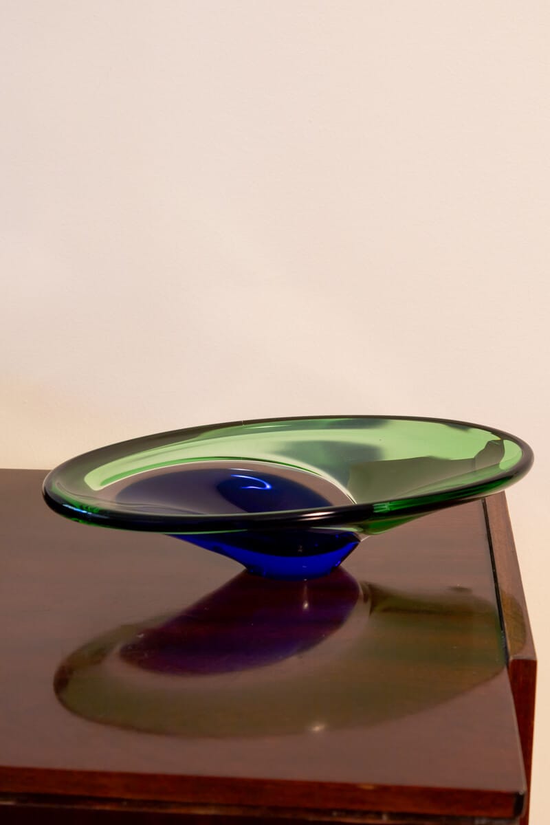 This Czechoslovakian masterpiece blends green, blue, and clear glass in a captivating, fluid shape that’s both timeless and hypnotic. Perfect as a fruit bowl or as a striking centerpiece, this bowl is sure to mesmerise with its rich colours and elegant craftsmanship.