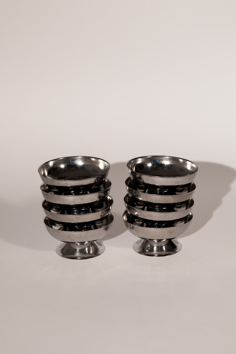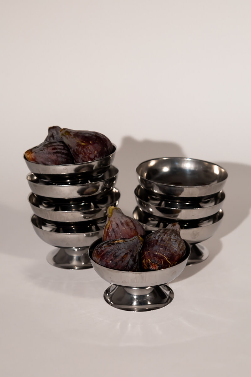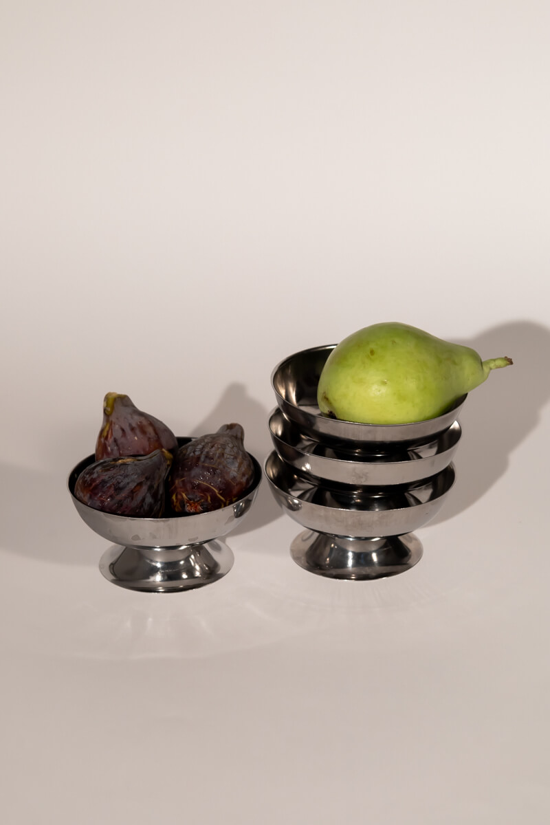 Bring a little vintage flair to your table! This stunning set of 4 vintage French dessert coupes is perfect for serving ice cream, desserts, fresh fruit, or even savoury bites. Crafted in stainless steel, with minimalist detailing and a timeless matte finish, they add a touch of French bistro elegance to any occasion.