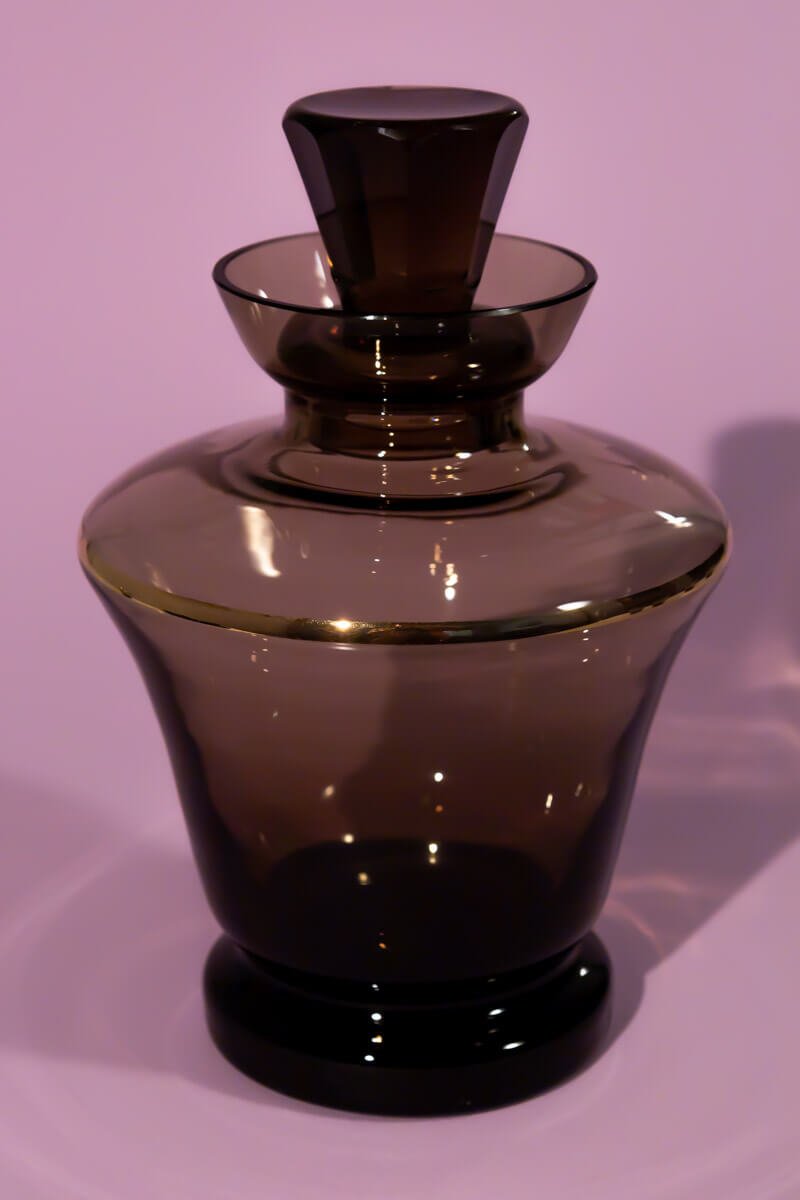 Vintage smokey grey art glass decanter set